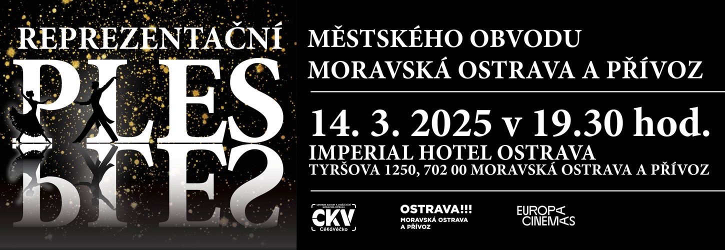 Reprezentační ples městského obvodu Moravská Ostrava a Přívoz se uskuteční 14. března 2025 od 19:30 hodin (vstup bude návštěvníkům plesu umožněn od 19.00 hodin) v repre prostorách Imperial Hotel Ostrava.